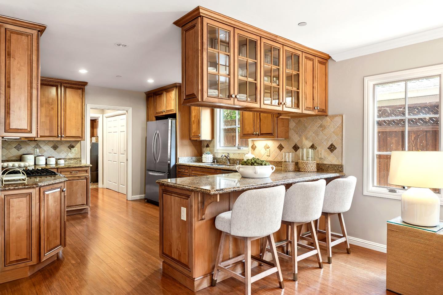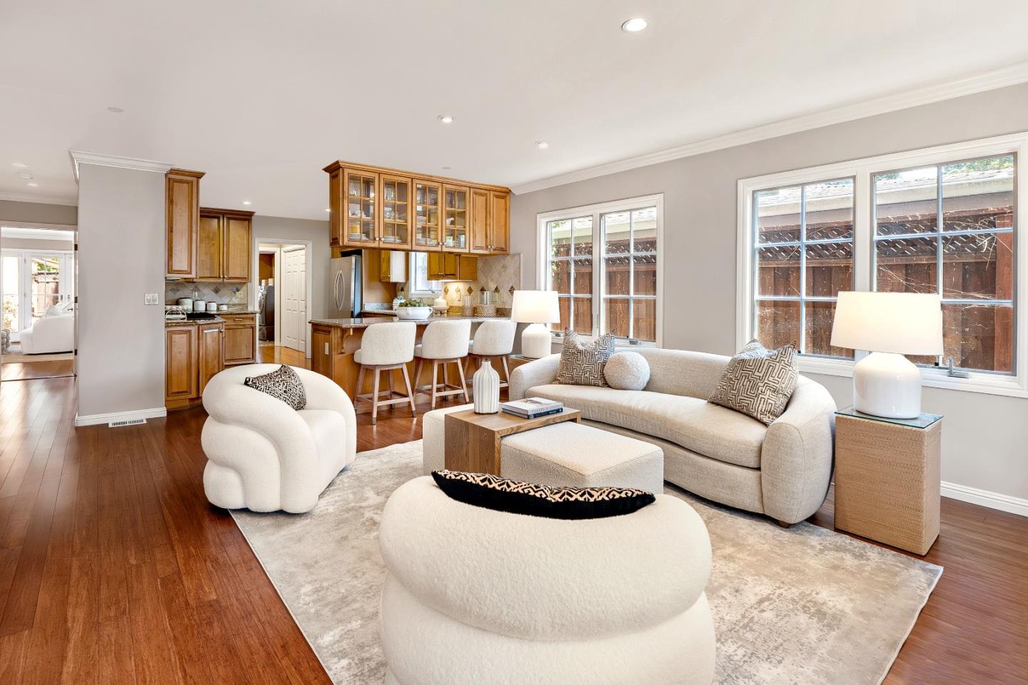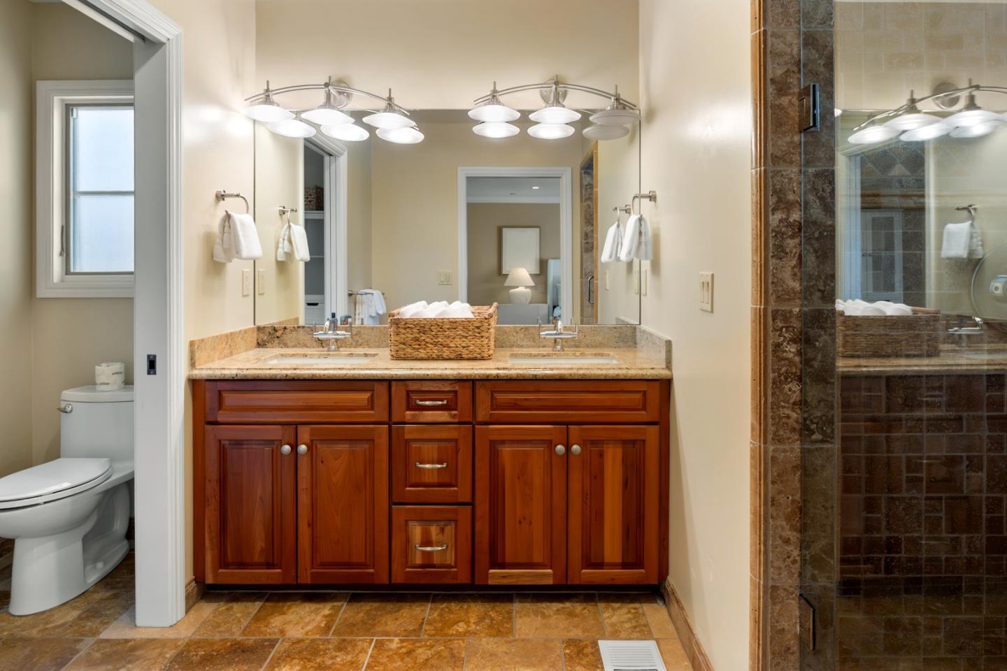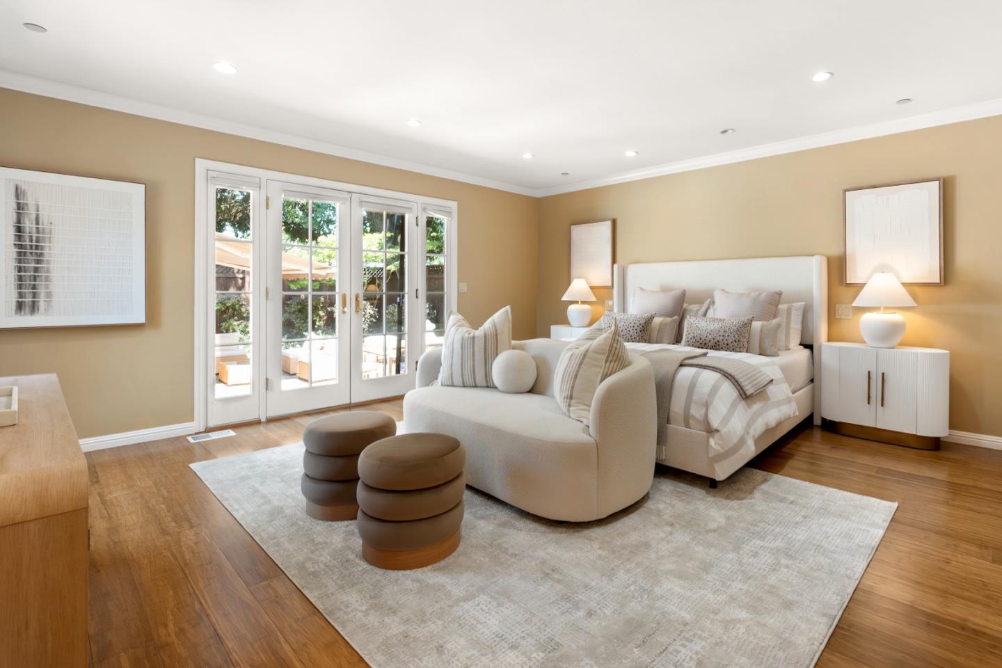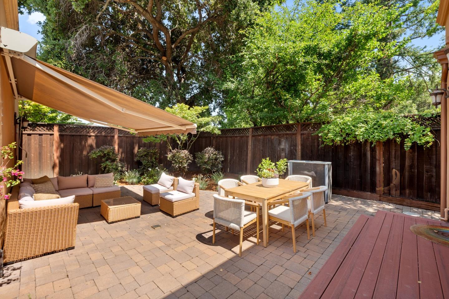 This charming single-story Spanish bungalow was completely rebuilt in 2009 and features 3 bedrooms and 2 baths, large open spaces and a great floor plan. The heart of the home is a spacious, open kitchen/family room. The kitchen features ample cabinetry, a large pantry, stone countertops, stainless steel KitchenAid appliances, and counter seating. The bedroom wing features 2 bedrooms, a large hall bath with 2 sinks and dual shower heads and a spacious primary suite, complete with a gorgeous bathroom and 2 custom-designed closets with built-ins. The mudroom with laundry area and a sink lead to the outside patio, which is just right with space to entertain and enjoy the garden. The detached 2-car garage has loads of built-in storage and a 220v EV outlet for EV charging. Beautiful wood floors, built-in closets throughout, owned solar panels, 2 Tesla batteries. Don't miss this wonderful, move-in ready home in Menlo Park