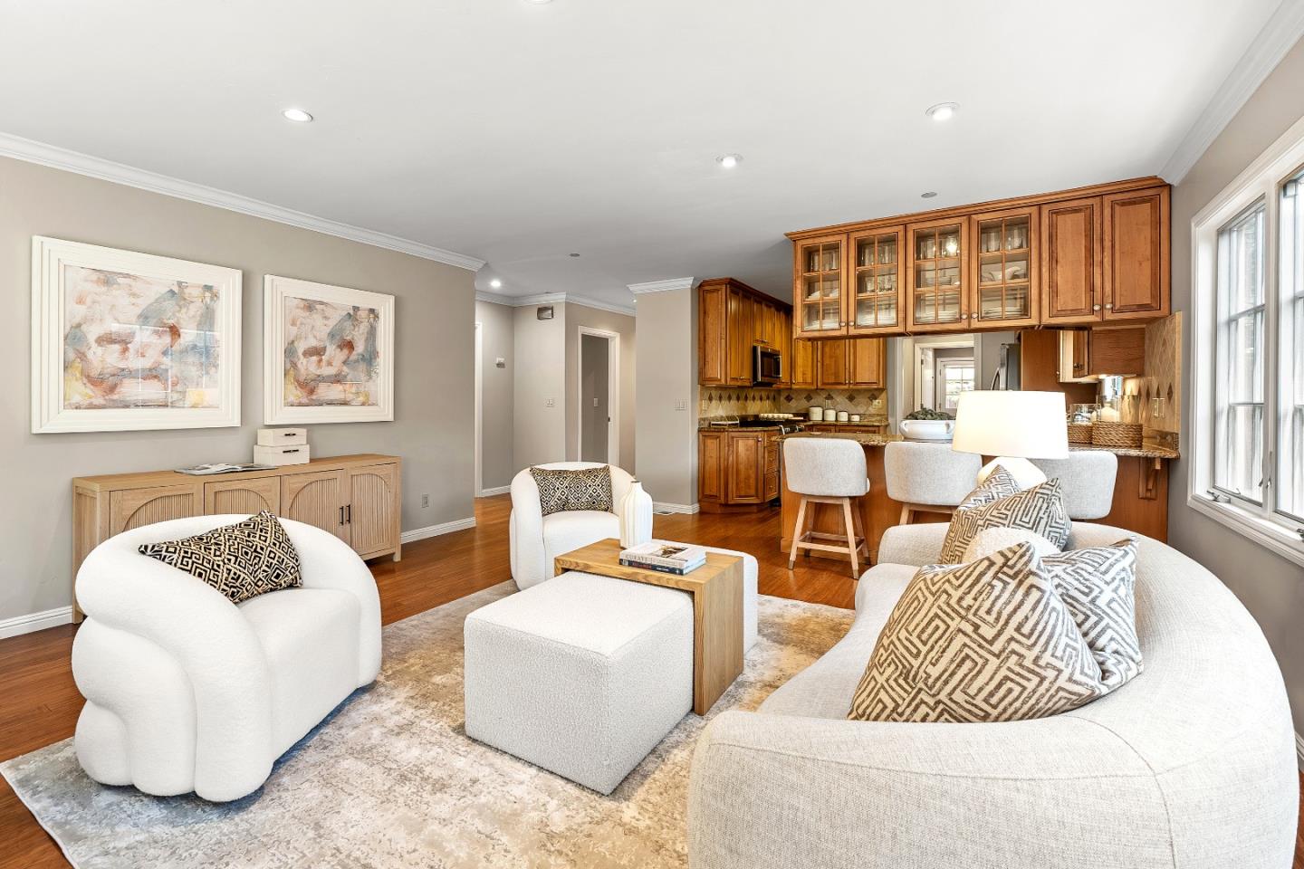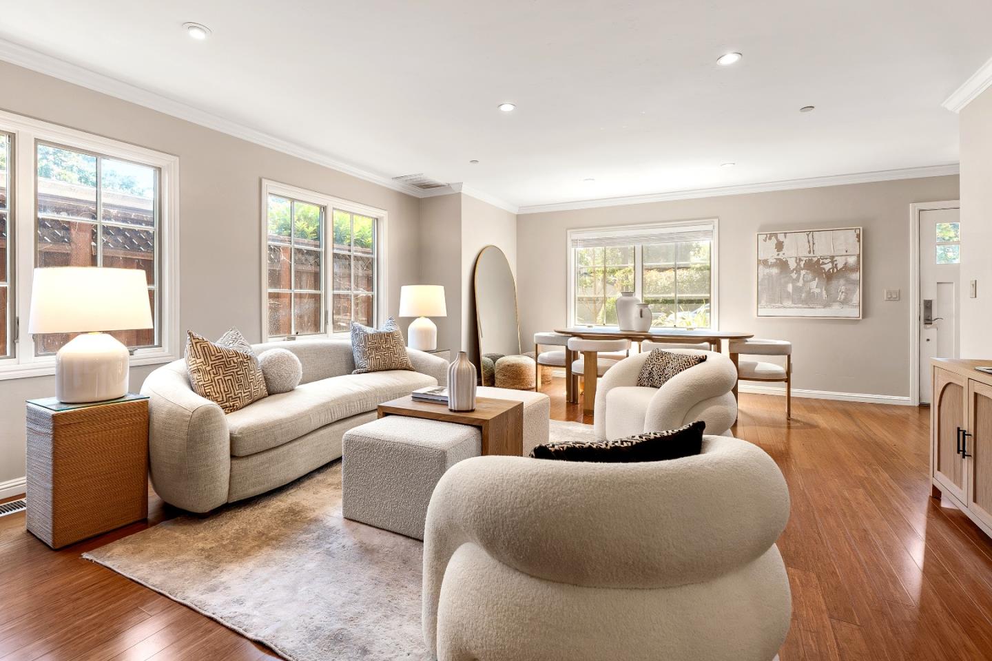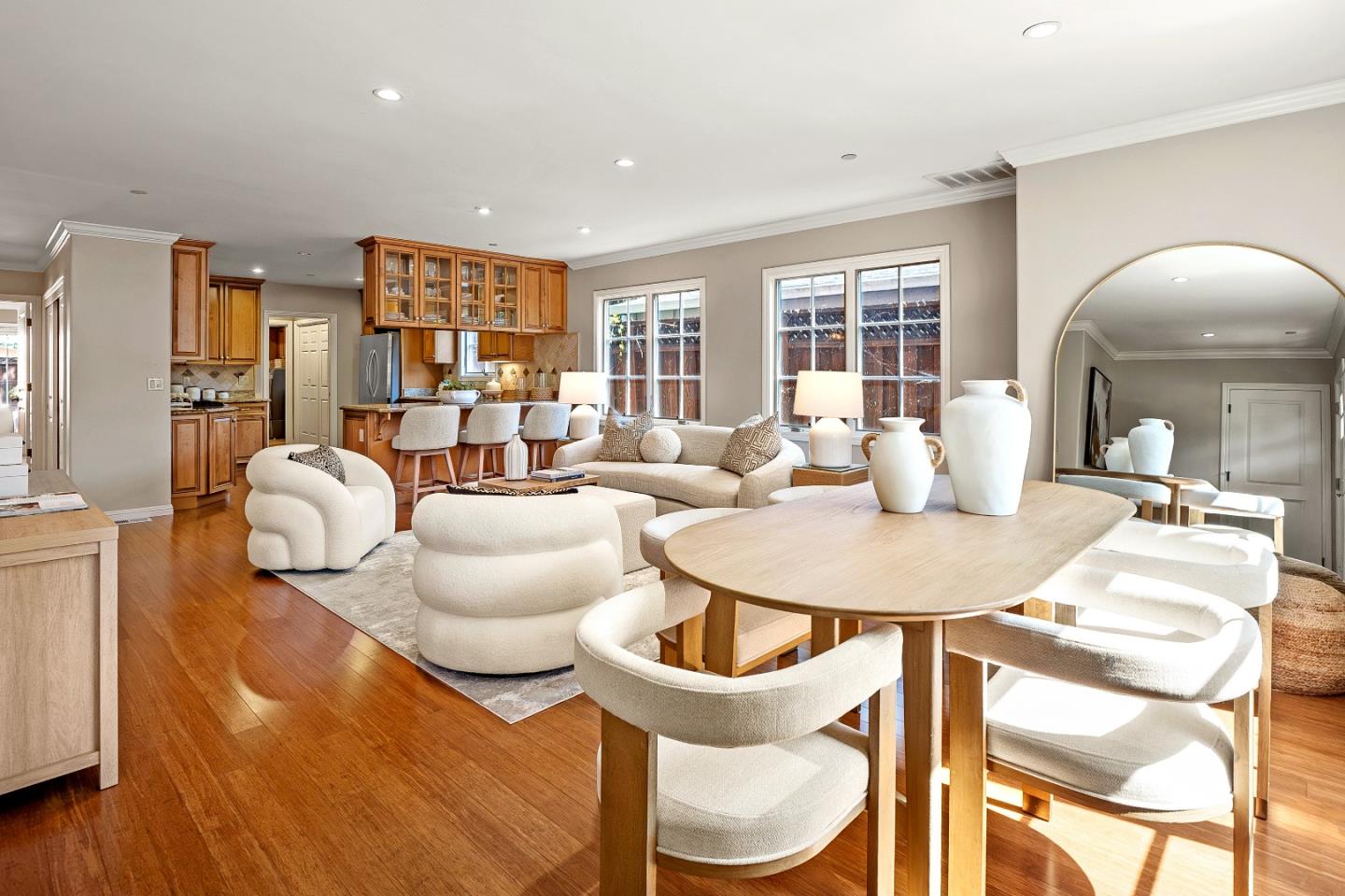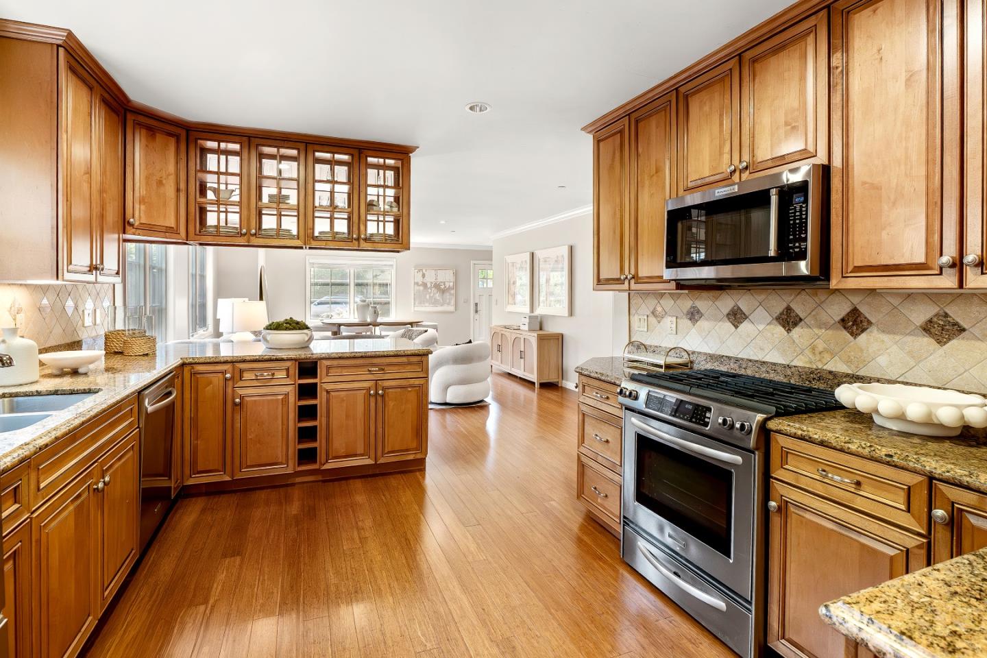 This charming single-story Spanish bungalow was completely rebuilt in 2009 and features 3 bedrooms and 2 baths, large open spaces and a great floor plan. The heart of the home is a spacious, open kitchen/family room. The kitchen features ample cabinetry, a large pantry, stone countertops, stainless steel KitchenAid appliances, and counter seating. The bedroom wing features 2 bedrooms, a large hall bath with 2 sinks and dual shower heads and a spacious primary suite, complete with a gorgeous bathroom and 2 custom-designed closets with built-ins. The mudroom with laundry area and a sink lead to the outside patio, which is just right with space to entertain and enjoy the garden. The detached 2-car garage has loads of built-in storage and a 220v EV outlet for EV charging. Beautiful wood floors, built-in closets throughout, owned solar panels, 2 Tesla batteries. Don't miss this wonderful, move-in ready home in Menlo Park