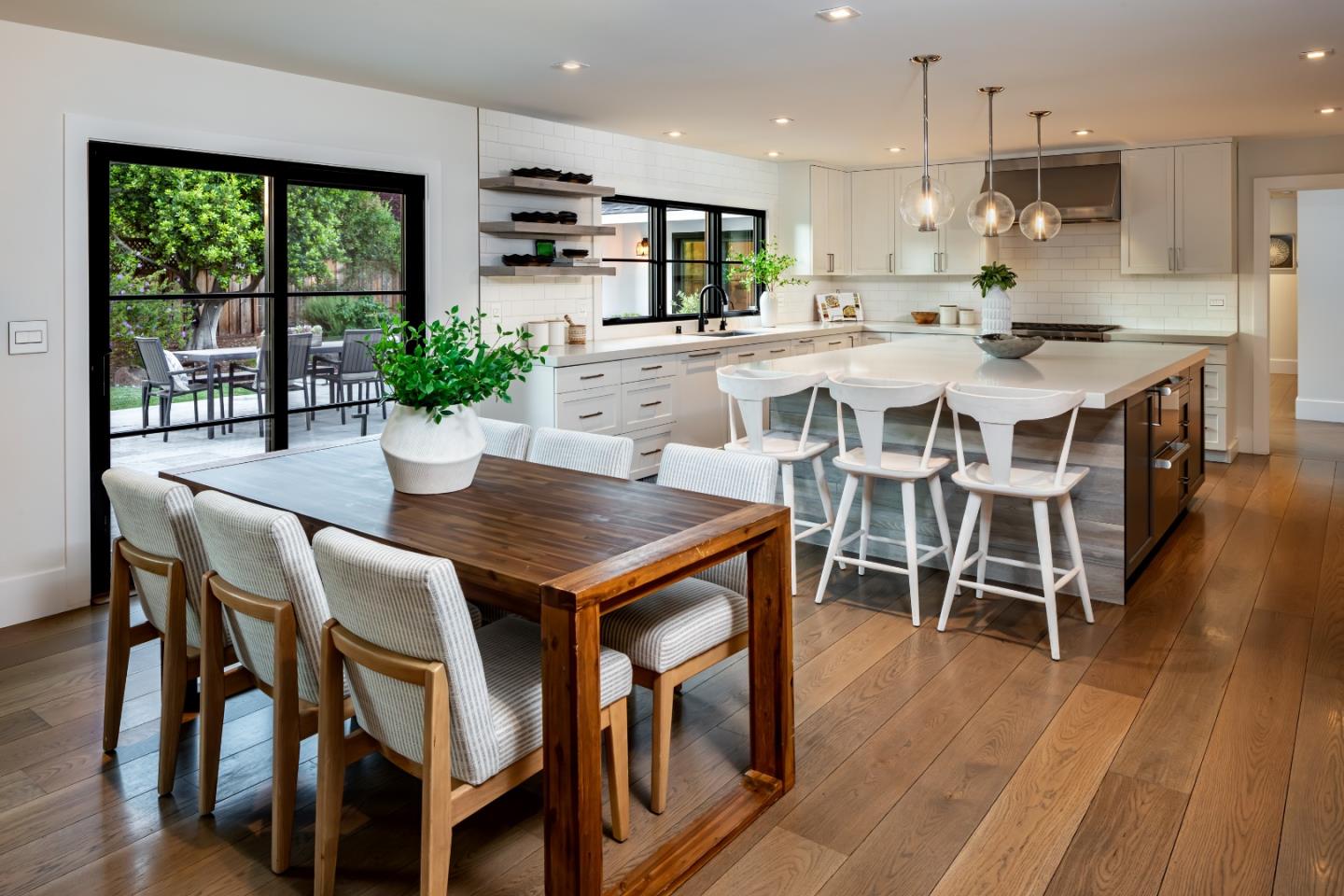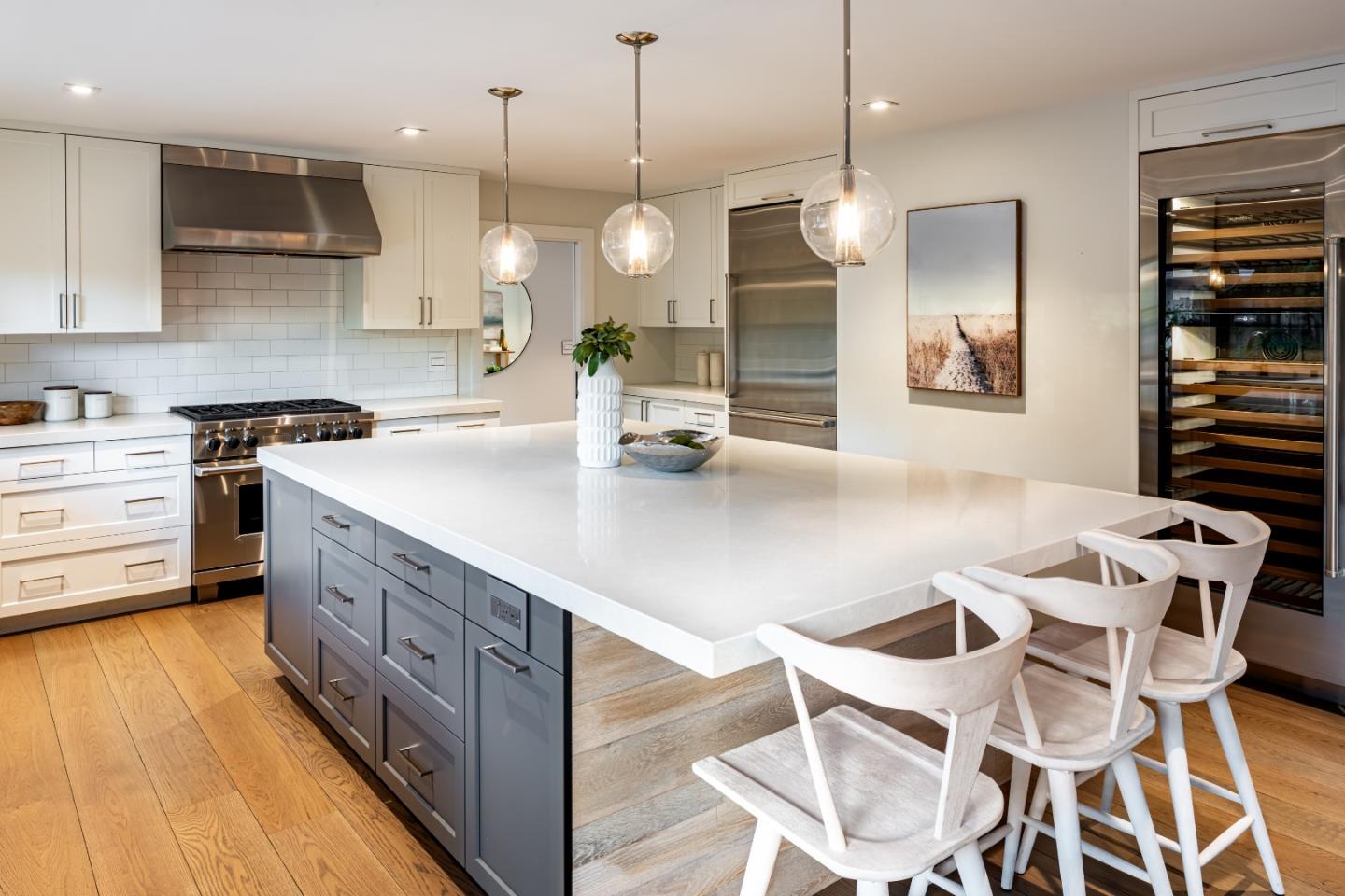 Gorgeous single level home in a prime North Los Altos location, remade in 2019 with finest appliances and materials. Upgrades include all new kitchen with custom cabinets, center island, Quartz countertops, Subzero Refrigerator, 2 Subzero refrigerator drawers, Subzero Wine Tower, Wolf Dual Fuel Range and microwave drawer. Main bathroom and second bath have marble counters and floors, and have been completely updated. Beautiful Carlyle white oak floors extend throughout the remainder of the house. Outside is a new bluestone deck, new landscaping, planting beds and fruit trees. In addition there is a new composition roof, solar panels, Tesla EV Charger with extra storage batteries, new 200 amp electrical line and Lutron switches and plates. Convenient to Los Altos schools, Stanford and downtown Los Altos shops and restaurants.
