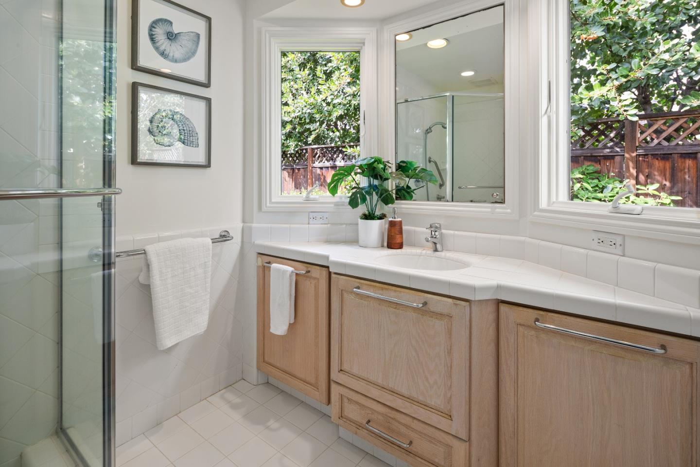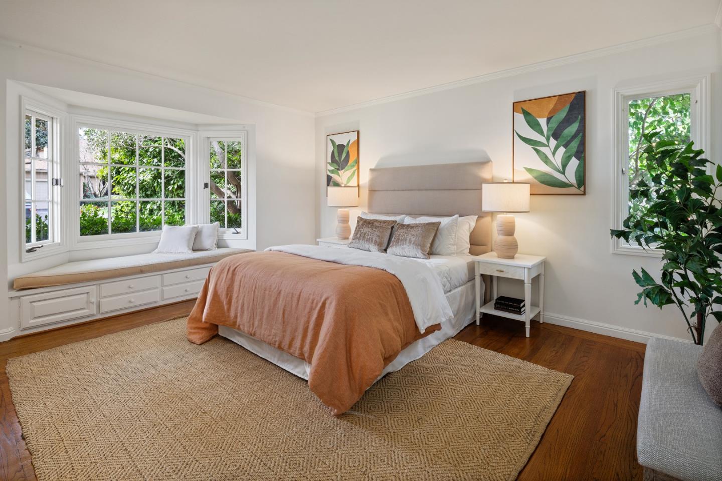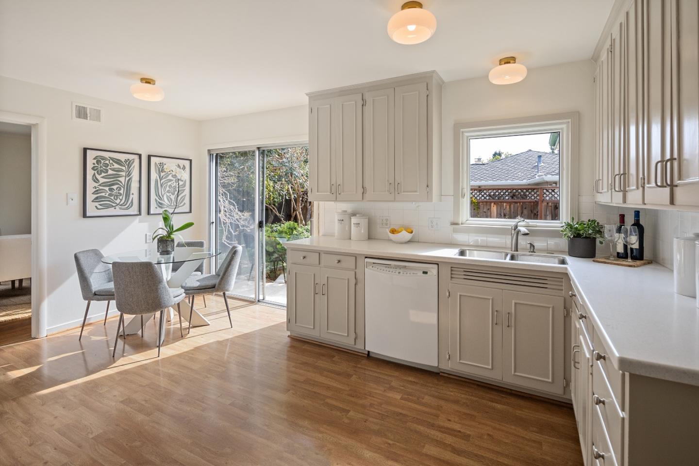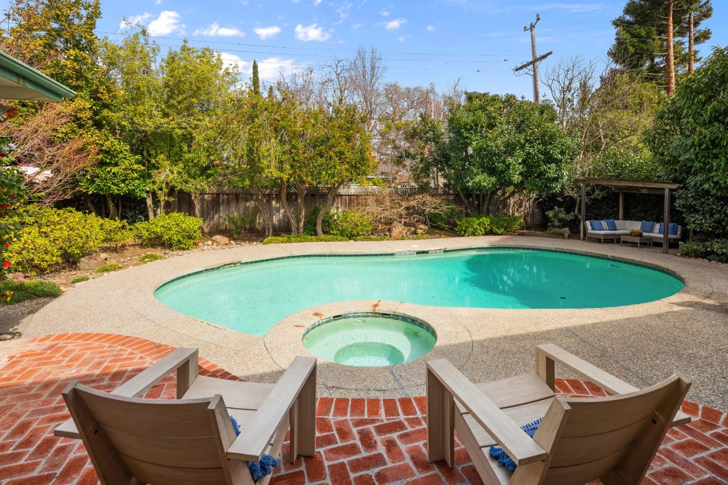 Prime Central Menlo Park! Charming property on serene and sought after tree-lined street. Classic home with wood floors, lovely floor to ceiling windows, formal dining room, pool and spa. The eat-in kitchen features sliding doors that open onto a side yard large enough for outdoor dining. Spacious rooms throughout including a primary suite with vanity and walk in closet. Multiple doors open onto the lovely, private backyard with pool. Two car garage with plenty of storage. This is a highly sought-after location - enjoy, remodel or build new. Award-winning Menlo Park schools.