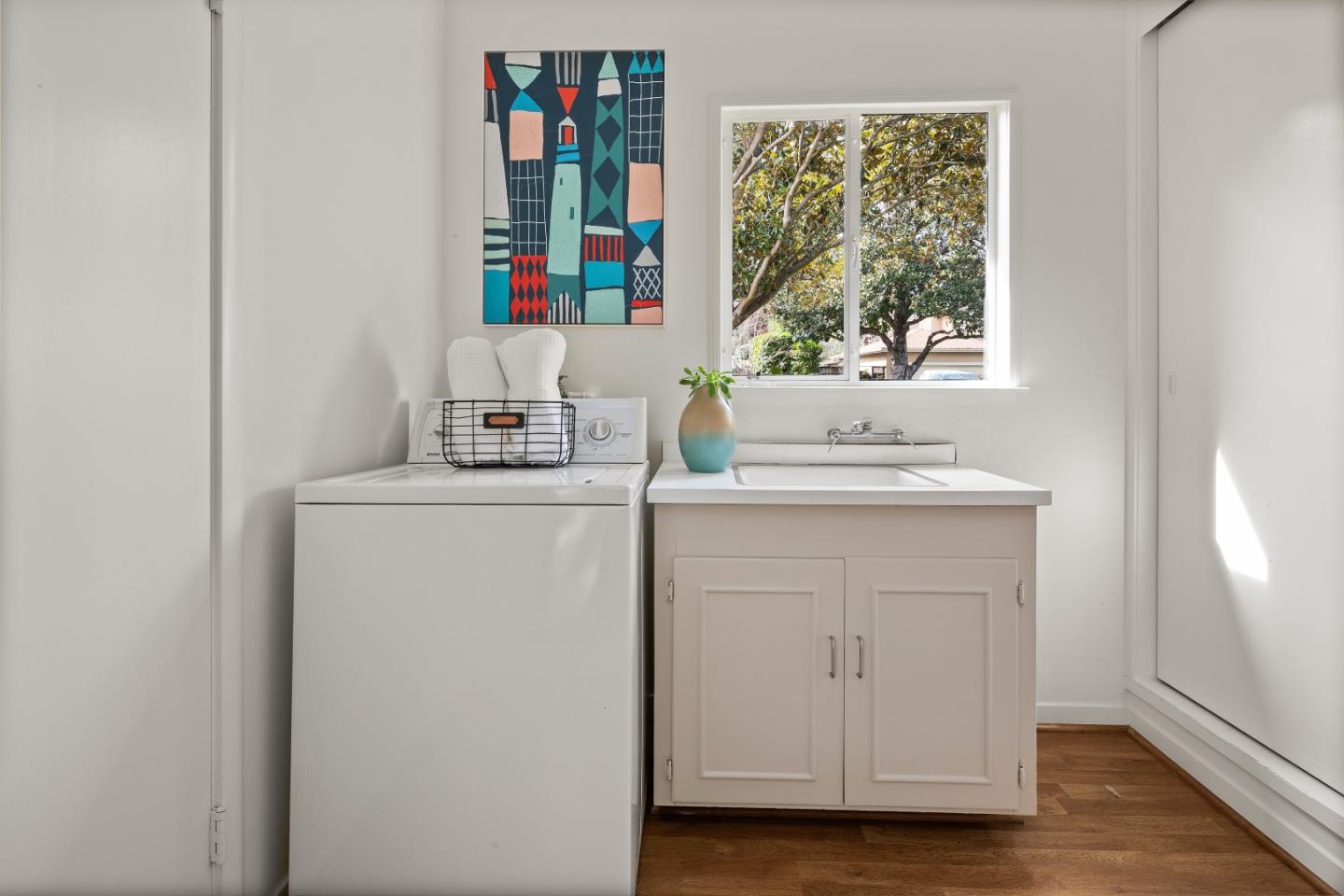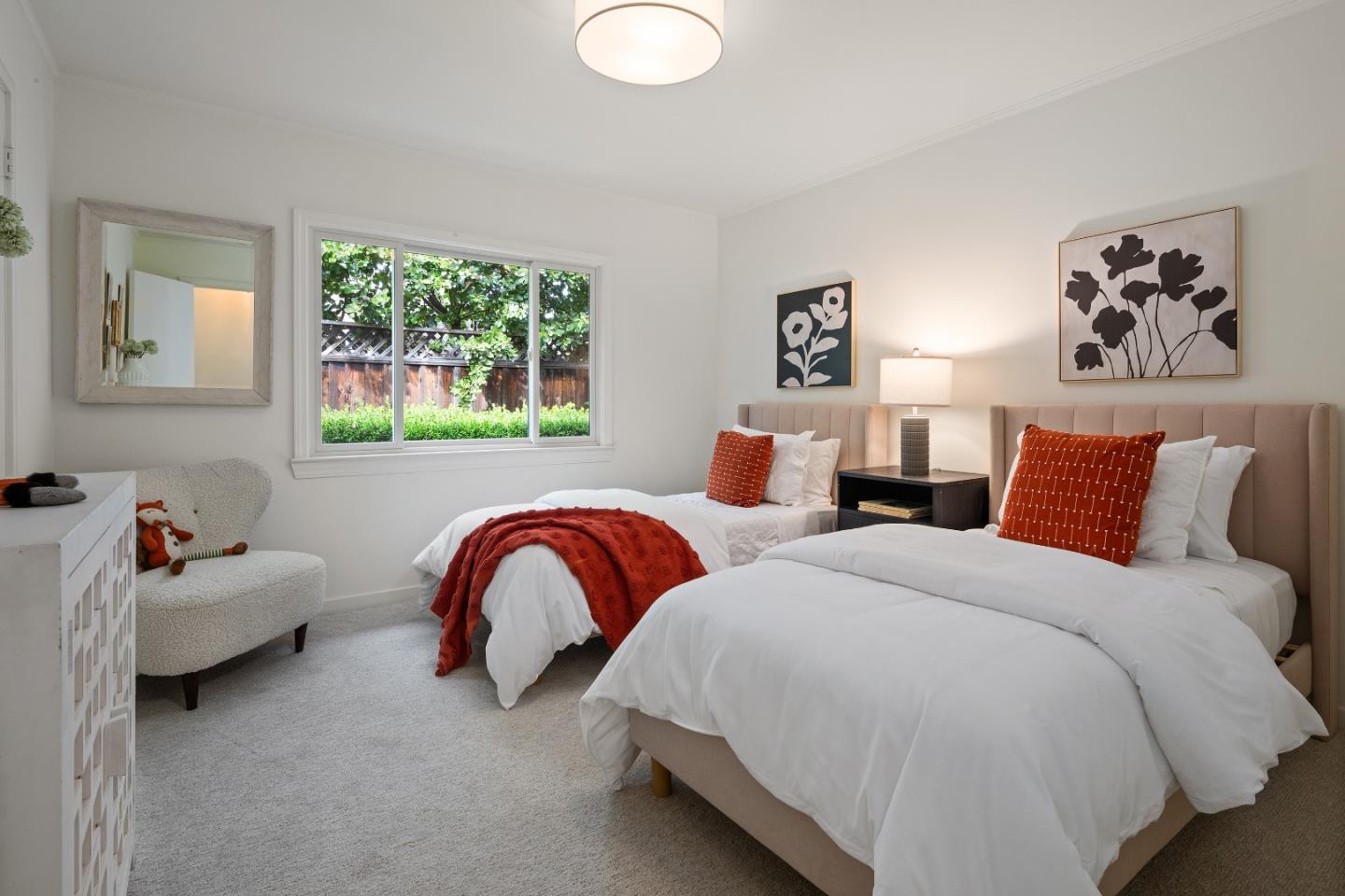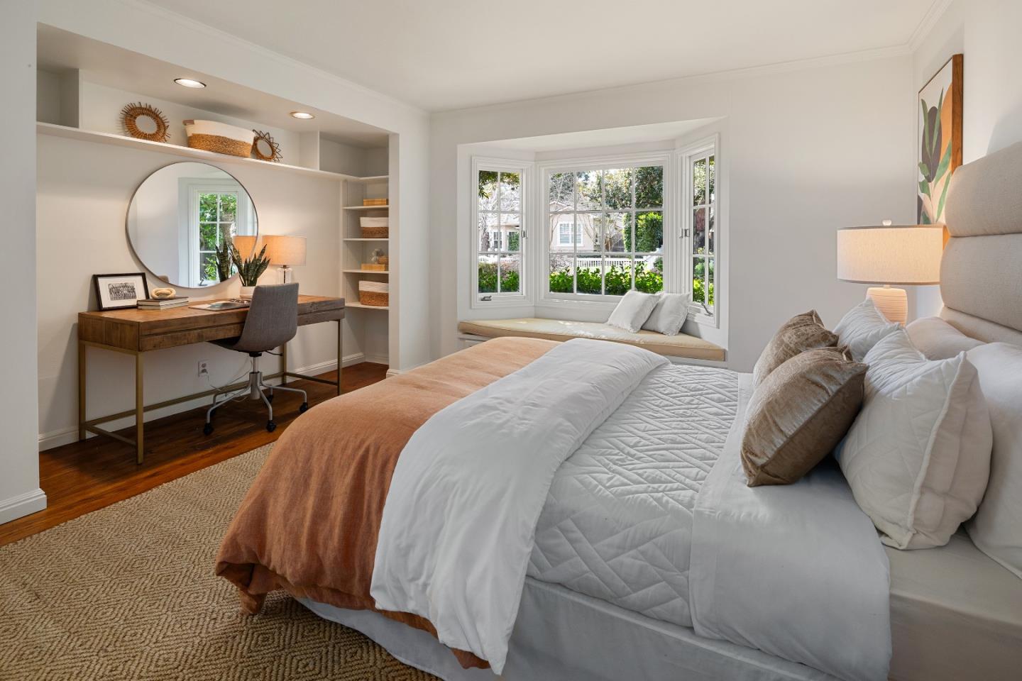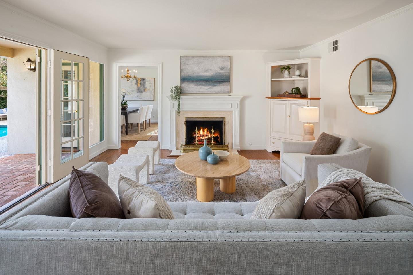 Prime Central Menlo Park! Charming property on serene and sought after tree-lined street. Classic home with wood floors, lovely floor to ceiling windows, formal dining room, pool and spa. The eat-in kitchen features sliding doors that open onto a side yard large enough for outdoor dining. Spacious rooms throughout including a primary suite with vanity and walk in closet. Multiple doors open onto the lovely, private backyard with pool. Two car garage with plenty of storage. This is a highly sought-after location - enjoy, remodel or build new. Award-winning Menlo Park schools.